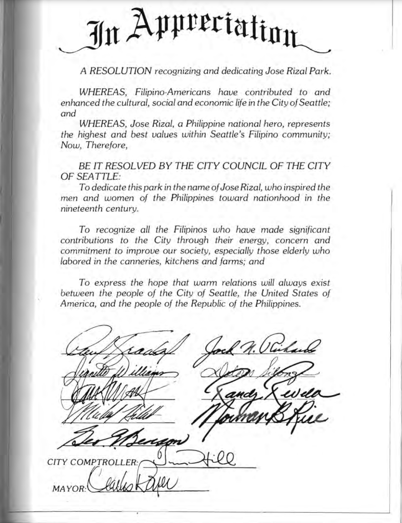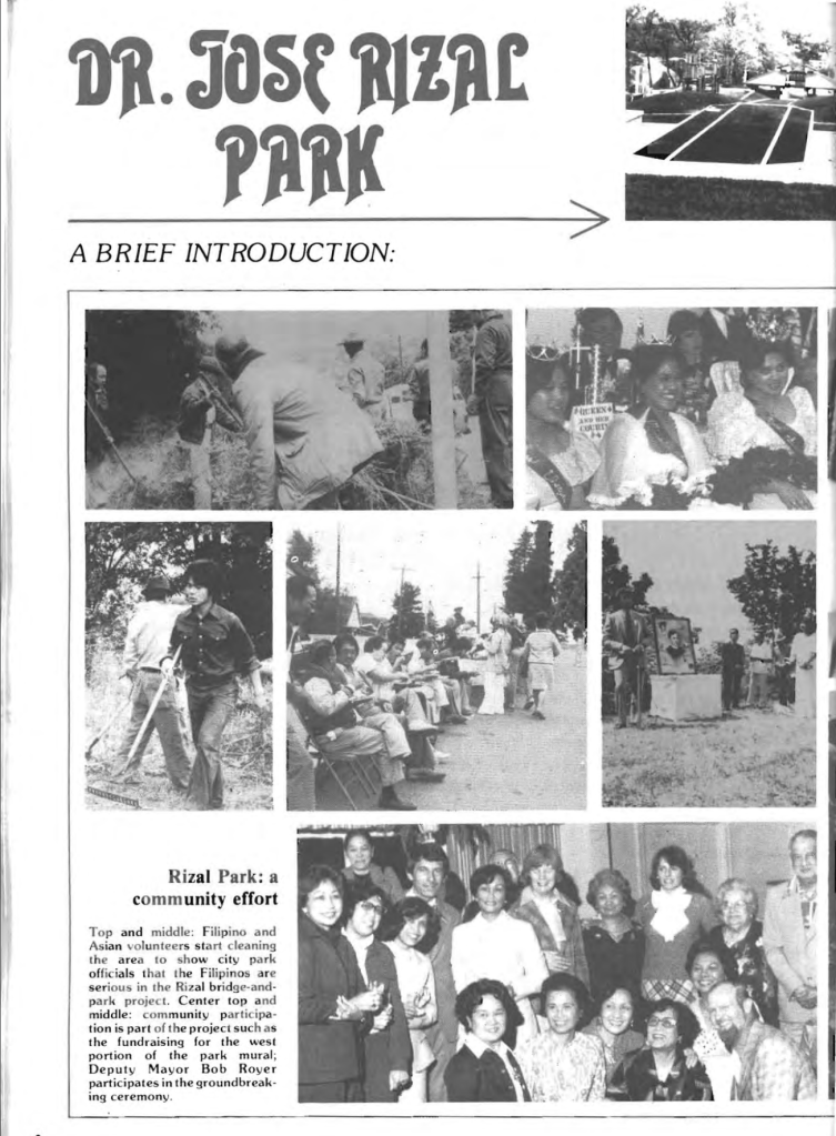 Read more of the community park’s history from “Filipino Americans and the Making of Seattle’s Dr. Jose P. Rizal Bridge and Park” by Andrew Hedden